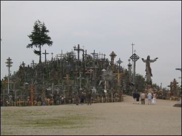 Zurück in Klaipeda fanden wir den Weg in die richtige Richtung diesmal ohne Probleme. Zum Mittag erreichten wir Siauliai im Landesinneren. Nach einem ausgiebigem Essen schauten wir uns noch ein bisschen in der Einkaufstraße um, besser wir wurden angeschaut bzw. angestarrt. Aber wirklich jeder richtete seinen Blick auf uns. Was Motorradklamotten so anrichten und es war wirklich kein schönes Gefühl so angestarrt zu werden, obwohl wir es mir Humor ertrugen. Anschließend fuhren wir in Richtung Norden zum Berg der Kreuze. Einfach gigantisch, es vermag wohl niemand zu sagen wie viele Kreuze dort hängen. Über schon bestehende wurden einfach weitere gehängt, in vielen Fällen konnte man das unterste schon gar nicht mehr erkennen.