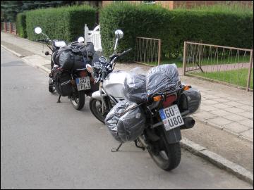 12.08.04, 14:00 Uhr: Endlich ging es auf die langersehnte Tour durchs Baltikum. Die Motorräder waren bepackt und startklar. Bei einem Kilometerstand von 36.915(Uta) und 50673 (Peter) starteten wir unsere erste Etappe nach Rostock zur Fähre.